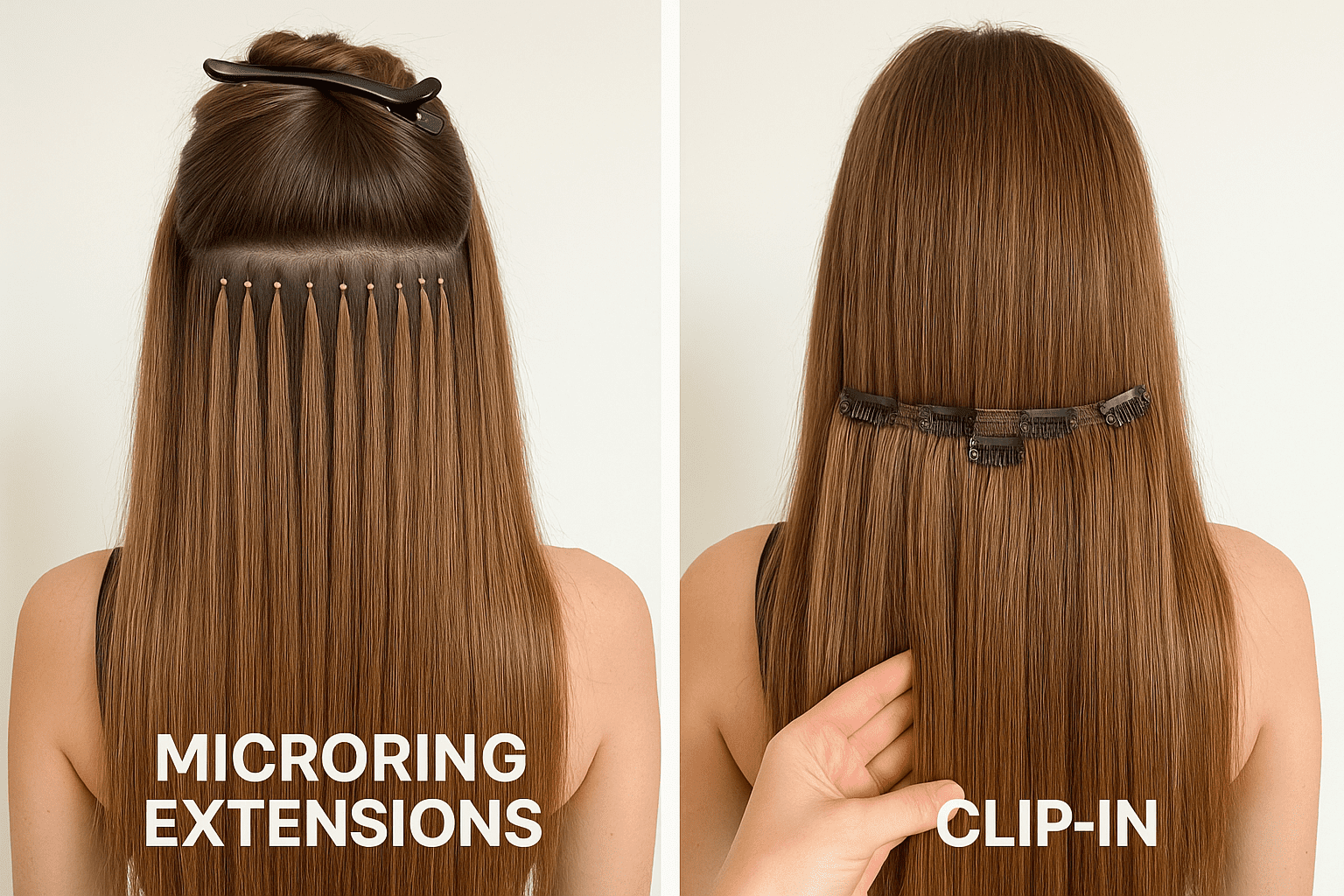 - Welche Methode ist besser für meinen Lebensstil? Wenn du einen dauerhaften Look wünschst, sind Microring Extensions ideal. Für gelegentliche Veränderungen sind Clip-Ins die bessere Wahl, da sie schnell und einfach zu handhaben sind.